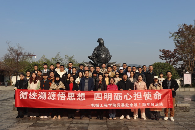 为深入学习贯彻党的二十届四中全会精神,进一步激发党员干部攻坚克难、实干担当的奋进力量,11月21日至22日,机械工程学院党委组织师生党员赴余姚开展主题党日活动。本次活动融合“实地研学”与“思想碰撞”,在产业前沿感受创新动能,于红色热土追溯初心使命,激励党员同志在行走的课堂中深化认识、凝聚共识。